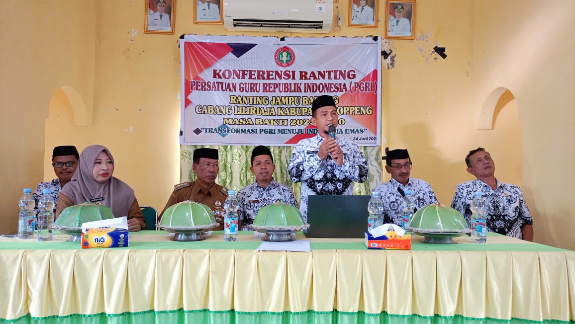 Andi Anwar selaku Kepala Desa Barang dan Nurhafsyah,S.Sos.,MM selaku Kepala Desa Jampu menghadiri acara Konferensi ranting Persatuan Guru Republik Indonesia (PGRI) Jampu Barang (Jabar) Masa Bakti Tahun 2025–2030, yang digelar pada hari Selasa, 24 Juni 2025. Acara tersebut berlangsung di Aula Desa Jampu, Kecamatan Liliriaja, Kabupaten Soppeng dengan mengusung tema “Transformasi PGRI Menuju Indonesia Emas”.